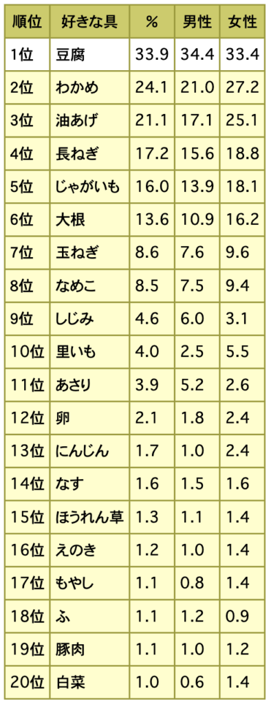 みそ汁で一番好きな具は(5,000人アンケート結果)